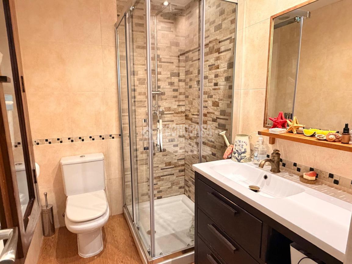 El baño en suite dispone de plato de ducha con mampara, mientras que el baño secundario cuenta con bañera, ambos con un diseño actual y cuidado. Toda la vivienda, excepto los cuartos de baño, está equipada con aire acondicionado, asegurando el máximo confort.