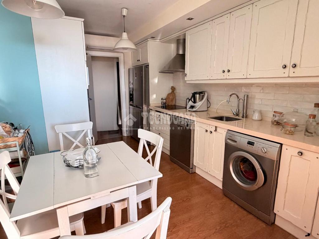 El corazón de la vivienda es su salón de 30 m² aproximadamente, amplio y luminoso, con salida directa a la terraza y acceso a un cerramiento acristalado que también comunica con la cocina, creando un espacio versátil y muy funcional, ideal como zona de estar adicional, comedor o despacho.